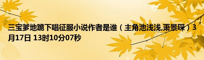 你们好,今天木子分享三宝爹地跪下唱征服小说作者是谁,跟随我一起瞧瞧吧!