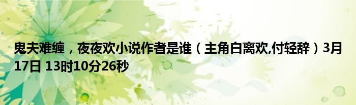 你们好,今天木子分享鬼夫难缠,夜夜欢小说作者是谁,跟随我一起瞧瞧吧!