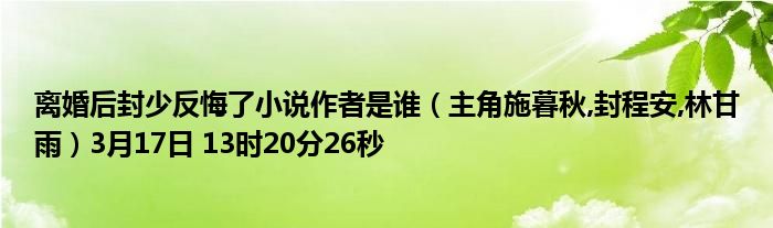 你们好,今天木子分享离婚后封少反悔了小说作者是谁,跟随我一起瞧瞧吧!