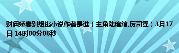你们好,今天木子分享财阀娇妻别想逃小说作者是谁,跟随我一起瞧瞧吧!