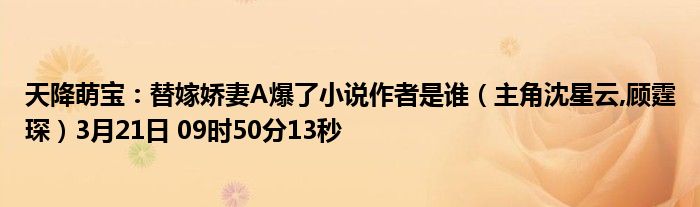 你们好,今天木子分享天降萌宝:替嫁娇妻A爆了小说作者是谁,跟随我一起瞧瞧吧!