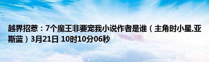 你们好,今天木子分享越界招惹:7个魔王非要宠我小说作者是谁,跟随我一起瞧瞧吧!