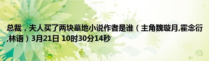 你们好,今天木子分享总裁,夫人买了两块墓地小说作者是谁,跟随我一起瞧瞧吧!