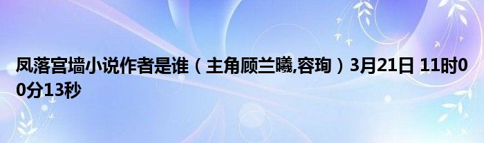 你们好,今天木子分享凤落宫墙小说作者是谁,跟随我一起瞧瞧吧!