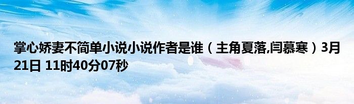 4、读书简介:以夏落、闫慕寒(苏眠、霍司爵是小说原主角)为主角的,小说名字是《掌心娇妻不简单》,该书又名《大佬的小灾星今天又掉马了》,是“栗子兔”大大的原创佳作,书中主要讲述的内容有:夏落自觉身上的担子已经够多了,所以并不愿意接管夏家的公司以及其他,可令她没有想到的是,爷爷竟在临终前,将家族公司等一切东西都留给了她,还安排了一个未婚夫!种种田摘摘花,闲云野鹤般的悠闲日子不复存在,为了不辜负爷爷的期望,夏落只好接过这个担子,在众人的嫉妒目光中,成为夏家的掌权人!