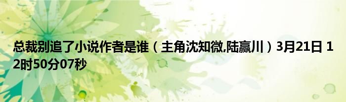 你们好,今天木子分享总裁别追了小说作者是谁,跟随我一起瞧瞧吧!