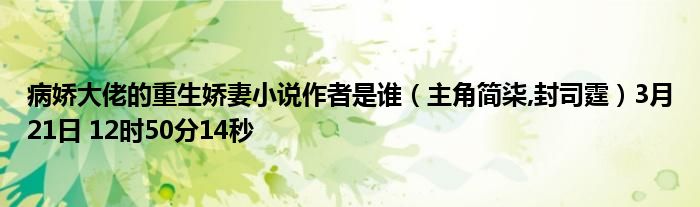 你们好,今天木子分享病娇大佬的重生娇妻小说作者是谁,跟随我一起瞧瞧吧!