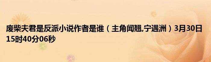 4、读书简介:闻翘、宁遇洲是《废柴夫君是反派》中的主角,小说别名《夫君是未来大魔王怎么办》,本书原创作者是“雾矢翊”,书中剧情梗概:闻翘从来都不是什么较弱的小姐,她知道在修仙世界没有实力只能被他人碾压,所以后来当被指婚给了无法修炼的废柴皇子宁遇洲之后,她的想法是以后要保护好自己的夫君。只是就在两个人的相处逐渐融洽的时候,闻翘发现自己那个废柴夫君宁遇洲实际上是一个炼丹天才,自此这个人开始颠覆她的认知!