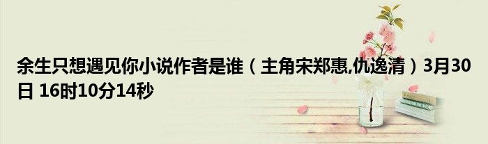 4、读书简介:宋郑惠、仇逸清是小说《余生只想遇见你》中的主角,本书又名《再见不负遇见》,小说作者“夜光杯”,书中主要内容是:七年前宋郑惠与仇逸清的相遇不过是因为一场蓄谋已久,后来事情结束之后她为了避免麻烦才会选择逃离,只是没想到七年后他们竟然会再一次有了交集。宋郑惠从来不觉得自己与仇逸清需要有过多的交集,但是现在这个人却霸道的闯入到了她的生活中,甚至还想禁锢她的一生!