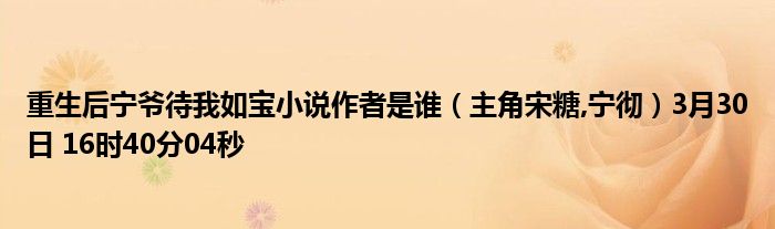 你们好,今天木子分享重生后宁爷待我如宝小说作者是谁,跟随我一起瞧瞧吧!