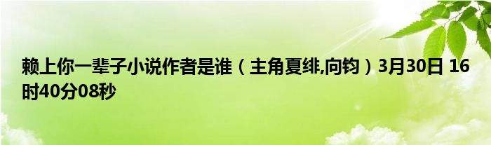 你们好,今天木子分享赖上你一辈子小说作者是谁,跟随我一起瞧瞧吧!