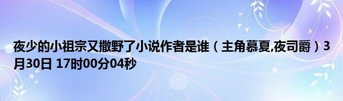 你们好,今天木子分享夜少的小祖宗又撒野了小说作者是谁,跟随我一起瞧瞧吧!