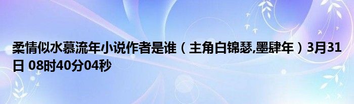 你们好,今天木子分享柔情似水慕流年小说作者是谁,跟随我一起瞧瞧吧!