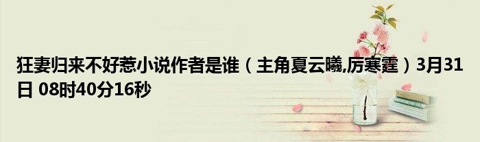 你们好,今天木子分享狂妻归来不好惹小说作者是谁,跟随我一起瞧瞧吧!