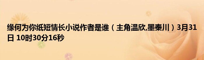 你们好,今天木子分享缘何为你纸短情长小说作者是谁,跟随我一起瞧瞧吧!