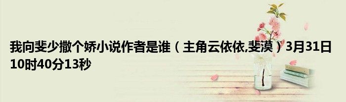 你们好,今天木子分享我向斐少撒个娇小说作者是谁,跟随我一起瞧瞧吧!