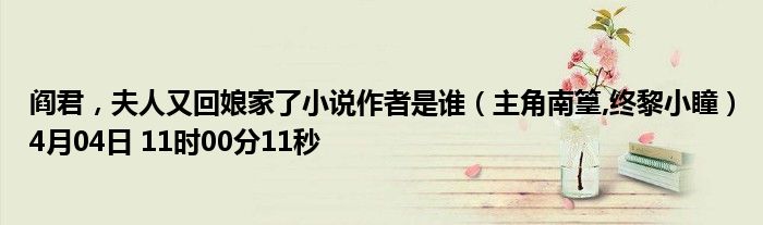 你们好,今天木子分享阎君,夫人又回娘家了小说作者是谁,跟随我一起瞧瞧吧!