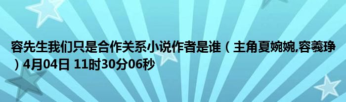 你们好,今天木子分享容先生我们只是合作关系小说作者是谁,跟随我一起瞧瞧吧!