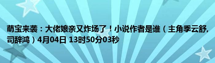 你们好,今天木子分享萌宝来袭:大佬娘亲又炸场了!小说作者是谁,跟随我一起瞧瞧吧!