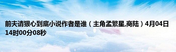 你们好,今天木子分享前夫请狠心到底小说作者是谁,跟随我一起瞧瞧吧!