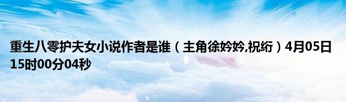 4、读书简介:《重生八零护夫女》是一部已完结的长篇现代女频重生逆袭题材小说,该书又名《重生逆袭:高能甜妻闯八零》,由“慕容晴晴”大大倾力打造,该书主要人物是徐妗妗、祝绗(徐锦锦、祝航是小说原主角),书中故事简述是:徐妗妗此生最后悔的事情,就是因为听信了身边小人的谗言,跟真正关心爱护自己的祝绗离了婚,失去了最后的依仗,彻底被那些极品家人拿捏住,成为了他们的提款机!所以重新来过的这一世,徐妗妗决定不再做无底线的“扶弟魔”、“扶父扶母魔”,而是要好好的跟祝绗过日子!