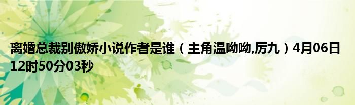 你们好,今天木子分享离婚总裁别傲娇小说作者是谁,跟随我一起瞧瞧吧!