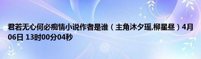 你们好,今天木子分享君若无心何必痴情小说作者是谁,跟随我一起瞧瞧吧!