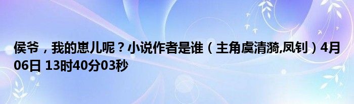 你们好,今天木子分享侯爷,我的崽儿呢?小说作者是谁,跟随我一起瞧瞧吧!