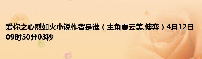 你们好,今天木子分享爱你之心烈如火小说作者是谁,跟随我一起瞧瞧吧!