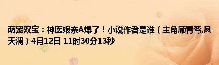 你们好,今天木子分享萌宠双宝:神医娘亲A爆了!小说作者是谁,跟随我一起瞧瞧吧!