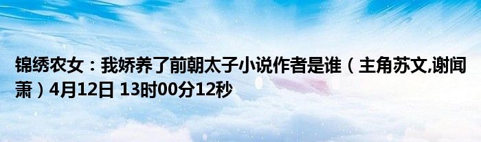 你们好,今天木子分享锦绣农女:我娇养了前朝太子小说作者是谁,跟随我一起瞧瞧吧!