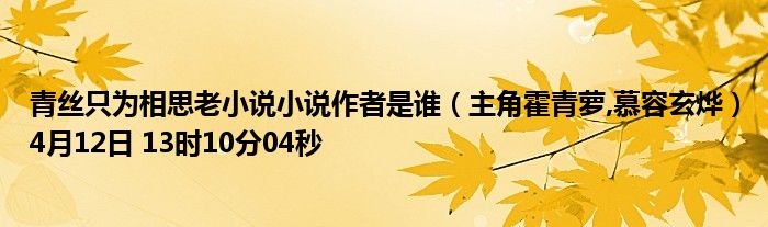 你们好,今天木子分享青丝只为相思老小说小说作者是谁,跟随我一起瞧瞧吧!