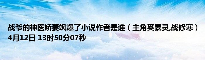 你们好,今天木子分享战爷的神医娇妻飒爆了小说作者是谁,跟随我一起瞧瞧吧!