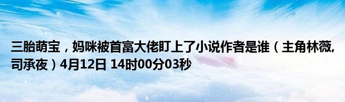你们好,今天木子分享三胎萌宝,妈咪被首富大佬盯上了小说作者是谁,跟随我一起瞧瞧吧!