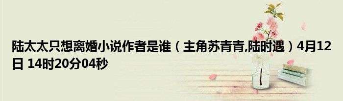 你们好,今天木子分享陆太太只想离婚小说作者是谁,跟随我一起瞧瞧吧!
