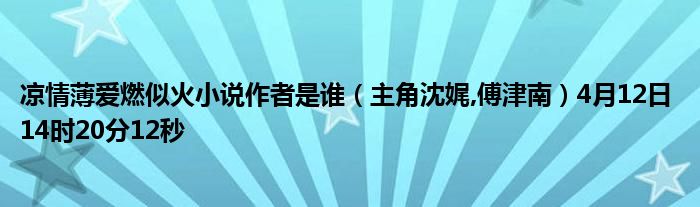 你们好,今天木子分享凉情薄爱燃似火小说作者是谁,跟随我一起瞧瞧吧!