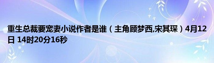 你们好,今天木子分享重生总裁要宠妻小说作者是谁,跟随我一起瞧瞧吧!