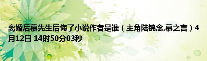你们好,今天木子分享离婚后慕先生后悔了小说作者是谁,跟随我一起瞧瞧吧!