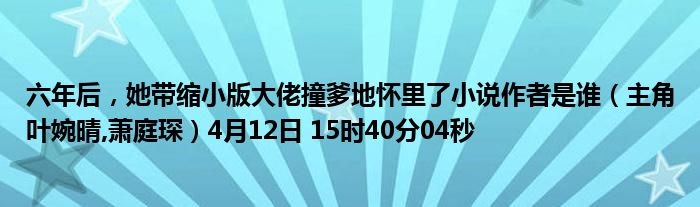 你们好,今天木子分享六年后,她带缩小版大佬撞爹地怀里了小说作者是谁,跟随我一起瞧瞧吧!