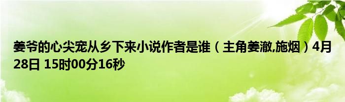 你们好,今天木子分享姜爷的心尖宠从乡下来小说作者是谁,跟随我一起瞧瞧吧!