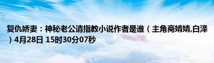 你们好,今天木子分享复仇娇妻:神秘老公请指教小说作者是谁,跟随我一起瞧瞧吧!