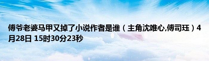 你们好,今天木子分享傅爷老婆马甲又掉了小说作者是谁,跟随我一起瞧瞧吧!