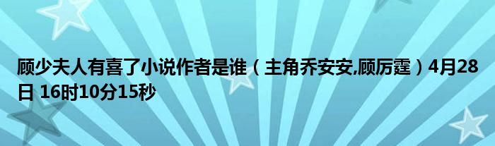 你们好,今天木子分享顾少夫人有喜了小说作者是谁,跟随我一起瞧瞧吧!