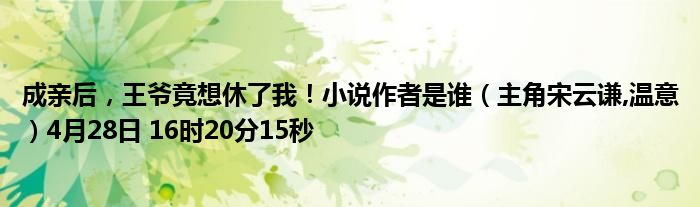 你们好,今天木子分享成亲后,王爷竟想休了我!小说作者是谁,跟随我一起瞧瞧吧!