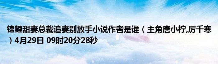 你们好,今天木子分享锦鲤甜妻总裁追妻别放手小说作者是谁,跟随我一起瞧瞧吧!