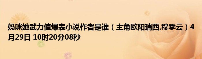你们好,今天木子分享妈咪她武力值爆表小说作者是谁,跟随我一起瞧瞧吧!