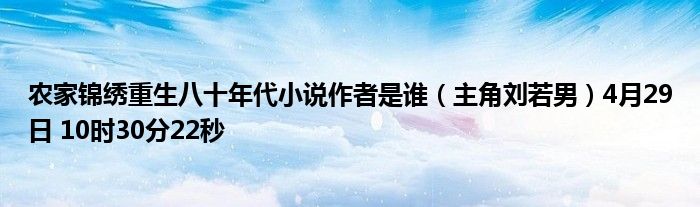 4、读书简介:年代重生言情小说《农家锦绣:重生八十年代》,作者是“团扇子”,全文围绕女主刘若男的视角展开描写,小说主要讲述了:意外重生回八十年代,刘若男果断选择了军婚。八十年代风气正,到处是好机会,到处都是好人。兵哥哥阳刚正经,在军营里,他们缺少变成坏男人的机会。而且,军婚离婚率超低的,稳定的家庭是幸福的摇篮,她必须抓住这个安稳且长情的婚姻契机。于是,重来一次的刘若男负责致富荣华,他的兵哥哥老公负责宠老婆!