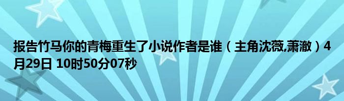 你们好,今天木子分享报告竹马你的青梅重生了小说作者是谁,跟随我一起瞧瞧吧!