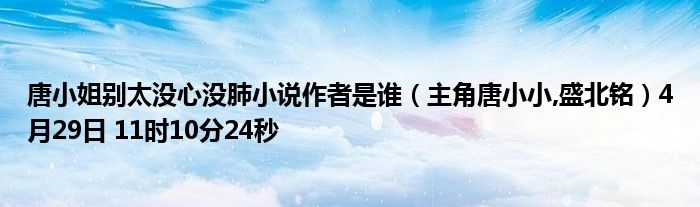 你们好,今天木子分享唐小姐别太没心没肺小说作者是谁,跟随我一起瞧瞧吧!