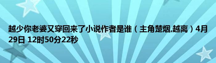 你们好,今天木子分享越少你老婆又穿回来了小说作者是谁,跟随我一起瞧瞧吧!